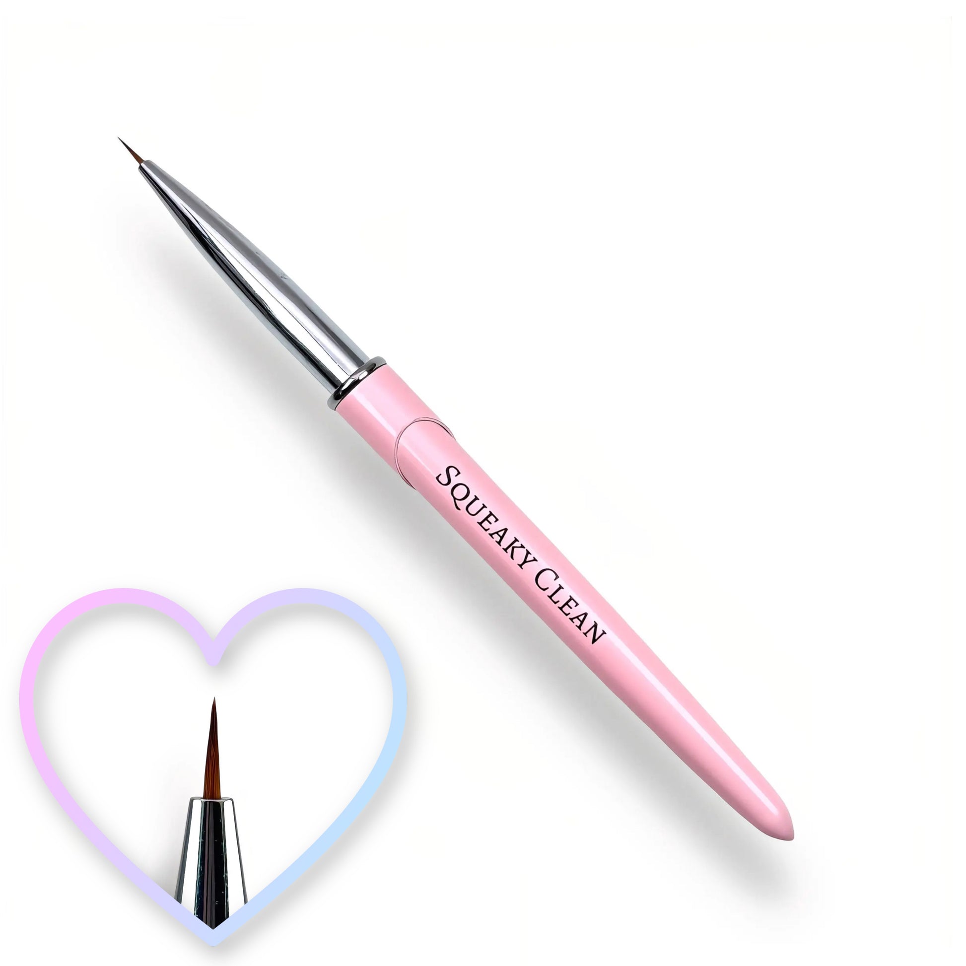 The 'SQUEAKY CLEAN' clean brush is perfect for cleaning up any little gel polish mistakes on the nail. Simply dip into 70% alcohol, pat on to a lint-free nail wipe and use like a paint brush. Now watch those unwanted blemishes disappear without ruining your design.