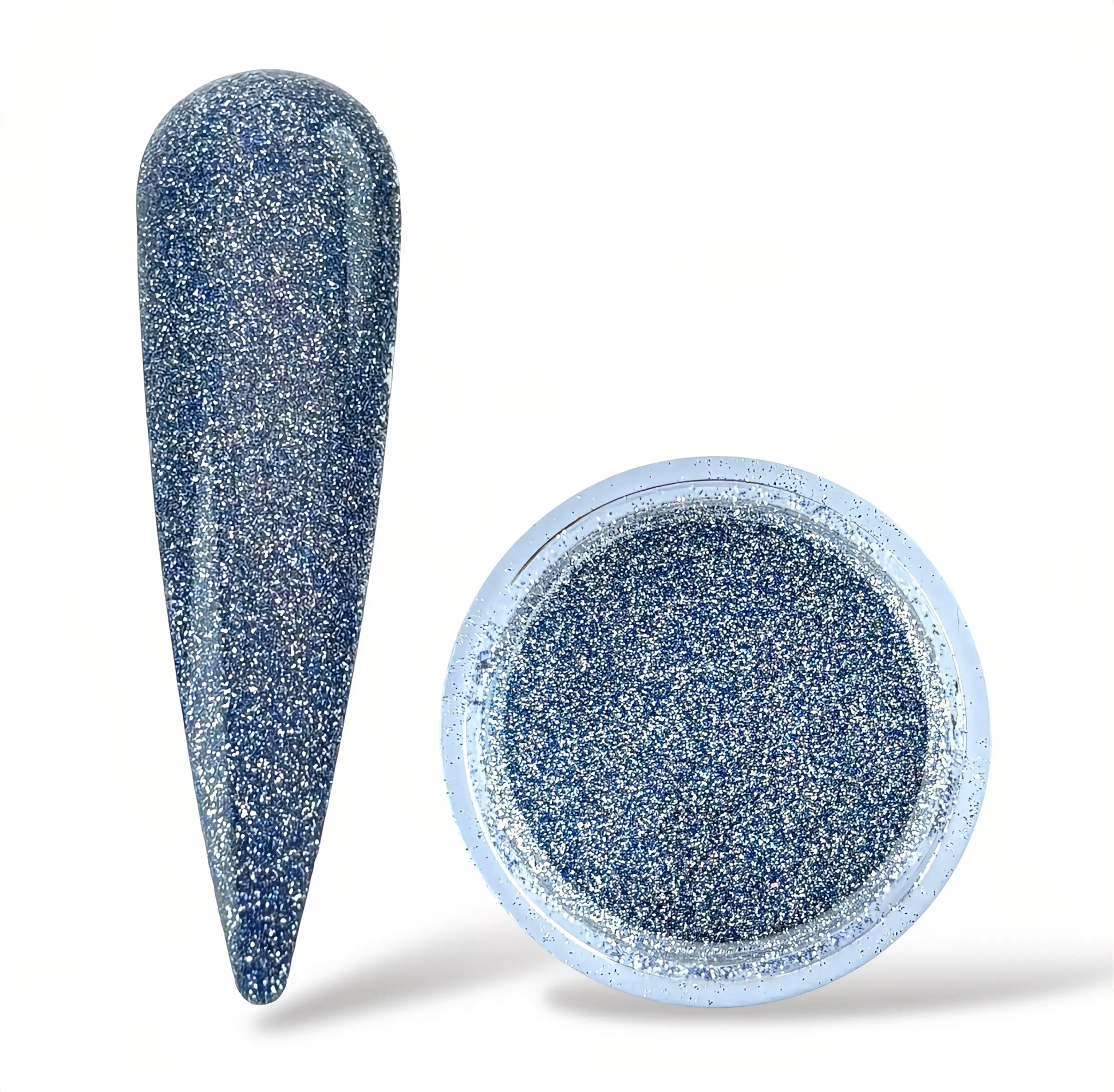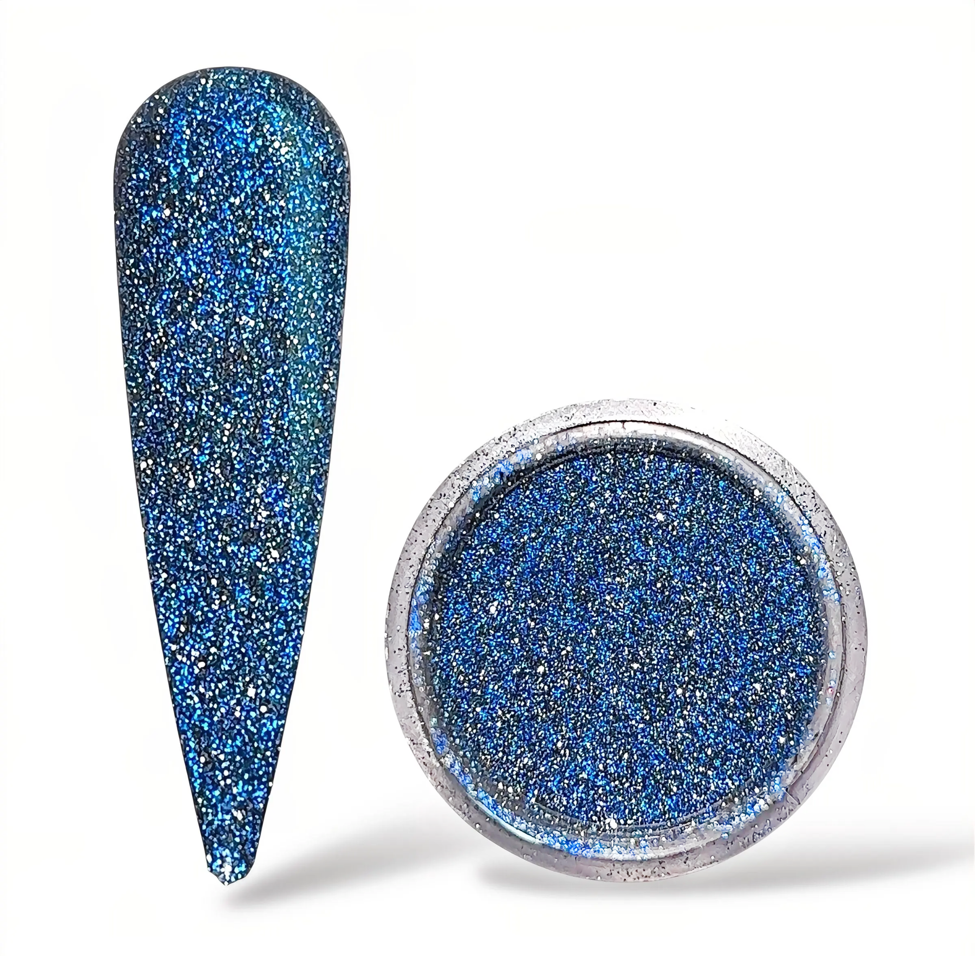 A rich diamond-reflective blue glitter filled with ultra-bright facets that capture the light like crushed sapphires.